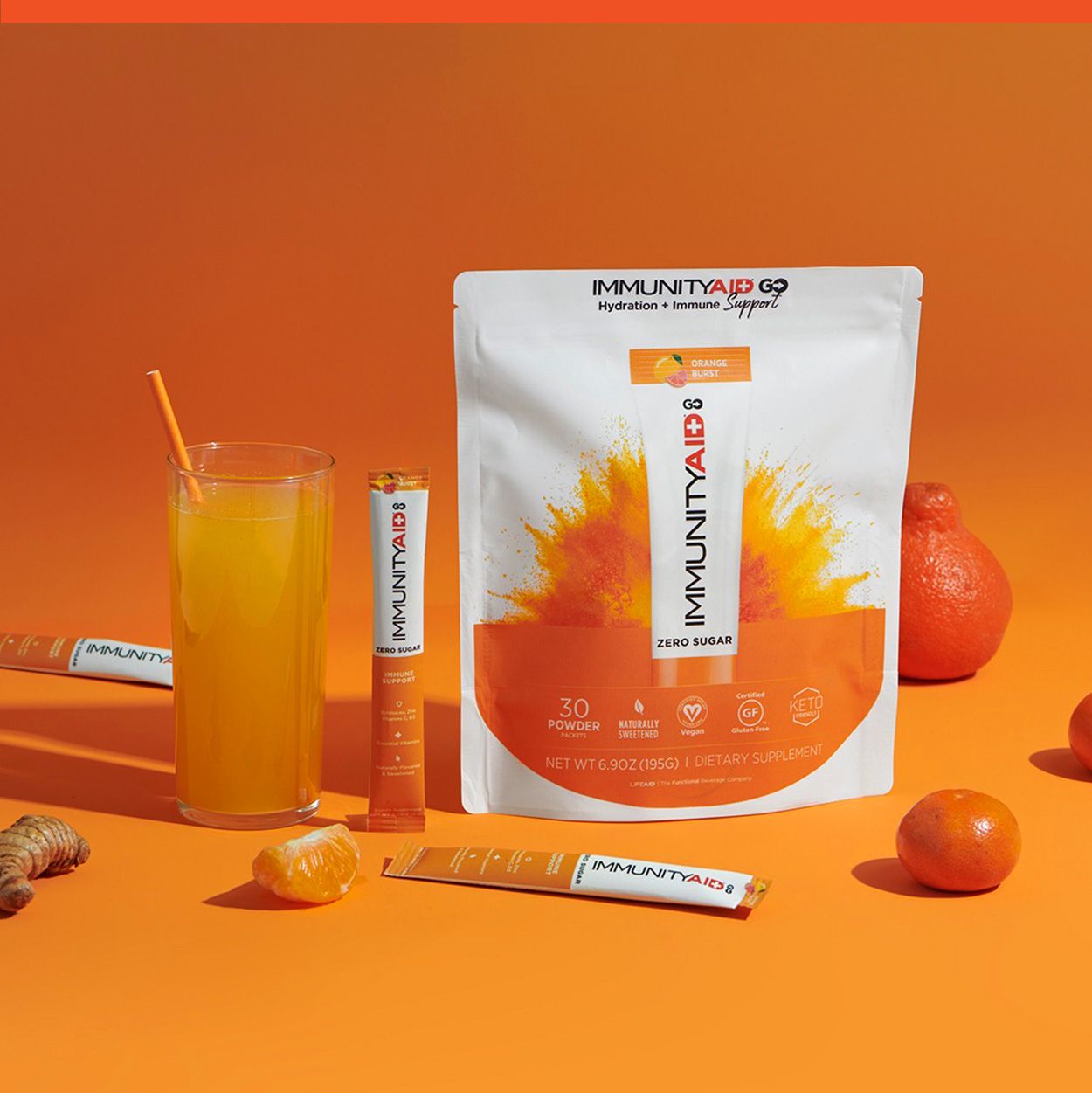 IMMUNITYAID GO is naturally sweetened with monk fruit and stevia for a crisp, sugar-free flavor.