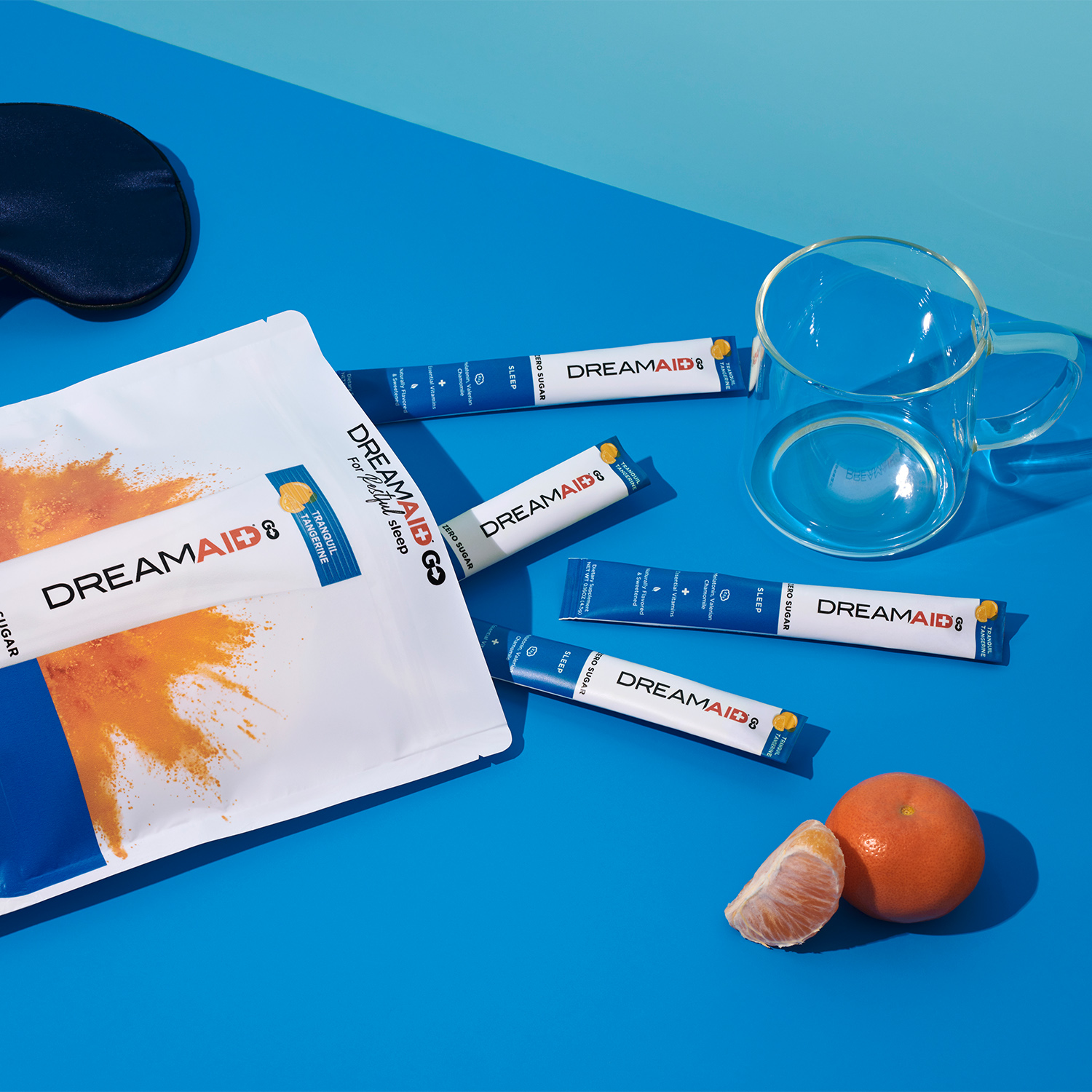 A soothing blend made with melatonin and chamomile, DREAMAID GO is a naturally sweetened, zero sugar way to unwind and relax before calling it a night. Just add water and enjoy either hot or cold.