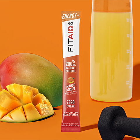 Fuel your day with FITAID Energy Go Mango Sorbet — a convenient, on-the-go powder packet packed with clean energy and vitamins. Each packet delivers 200mg of naturally sourced caffeine from green tea to keep you energized without the crash. Enjoy the benefits of the original FITAID Energy Blend, now in a portable format that fits your active lifestyle. Simply mix with water for a refreshing burst of tropical mango flavor and functional energy. Whether you're at the gym, on a hike, or on the road, FITAID Energy Go is your ultimate companion.