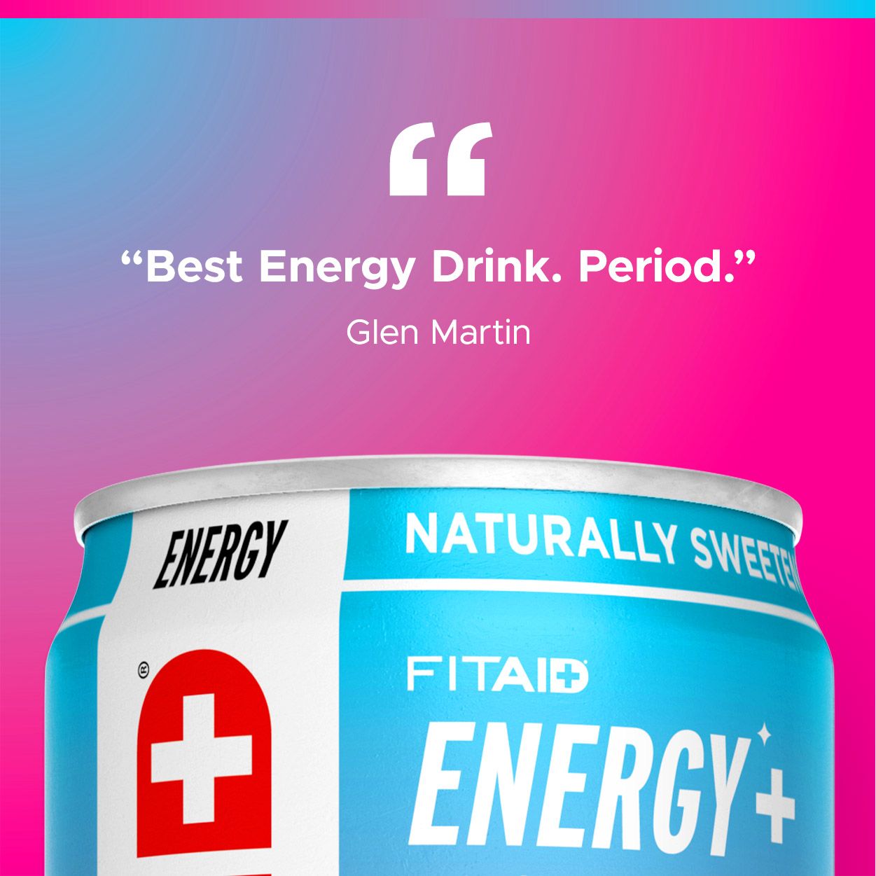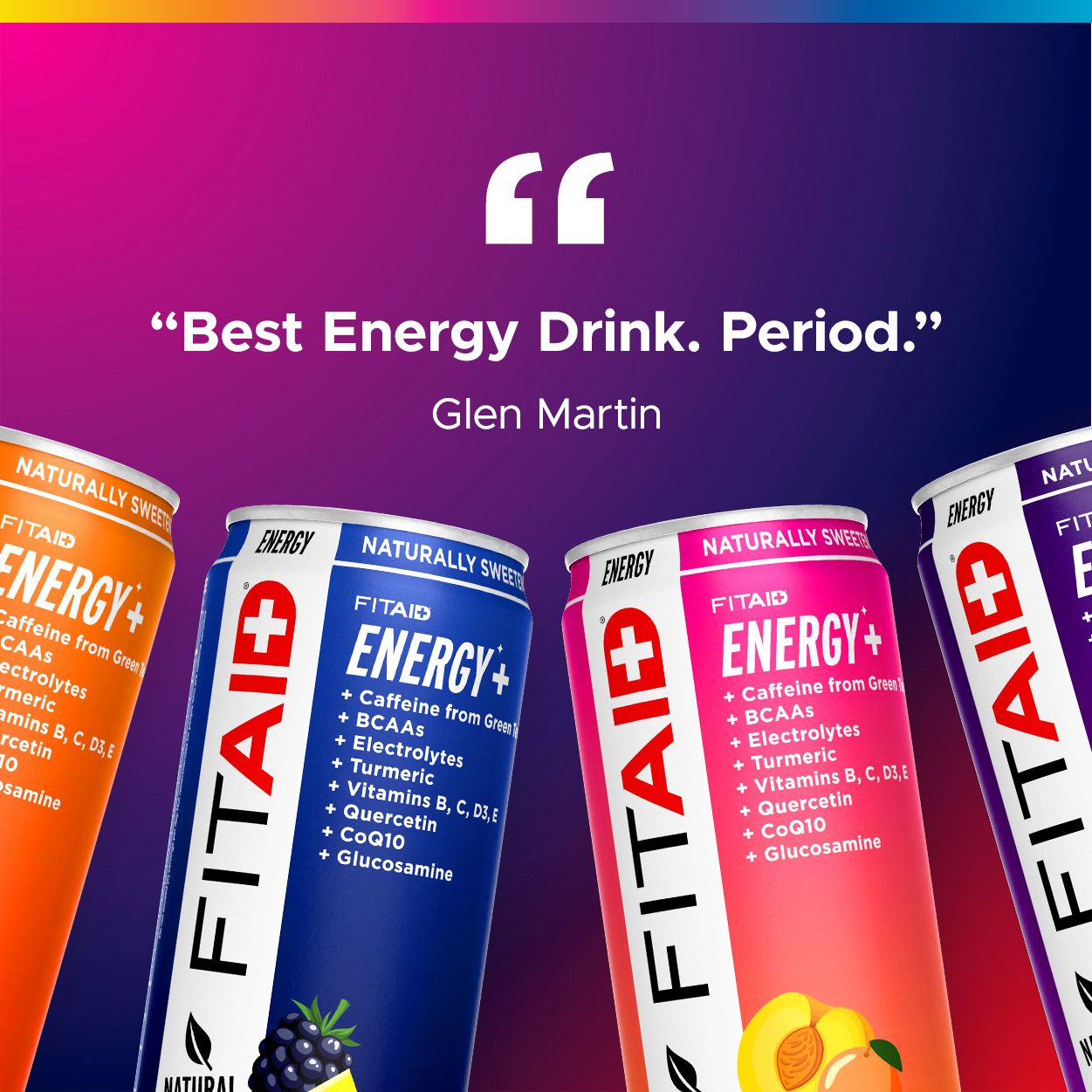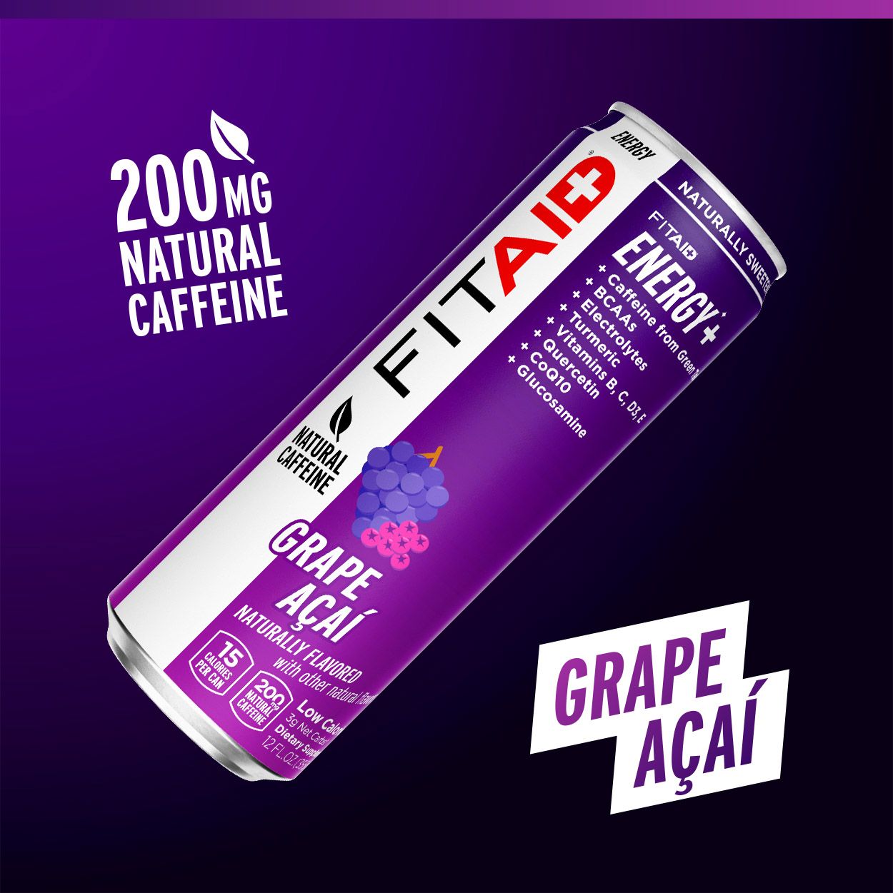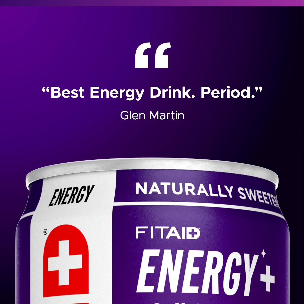 FITAID Energy is a performance fitness energy drink boosted with 200mg of plant-sourced caffeine from green tea. It is naturally sweetened with no sucralose, no aspartame, and no compromises. The natural caffeine charges you up to fight fitness fatigue while our original post-workout vitamin blend helps fast track your recovery. It is stacked with BCAAs, and essential vitamins, and provides a crash-free kick of bold caffeine. All of our hand-picked ingredients have met the highest supplement standards and are always vegan, non-gmo, and gluten-free. Welcome to energy 3.0, recharge with the best.