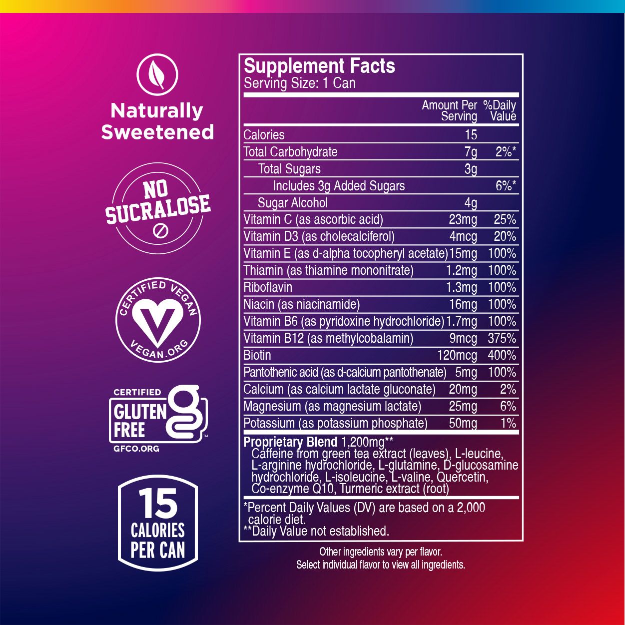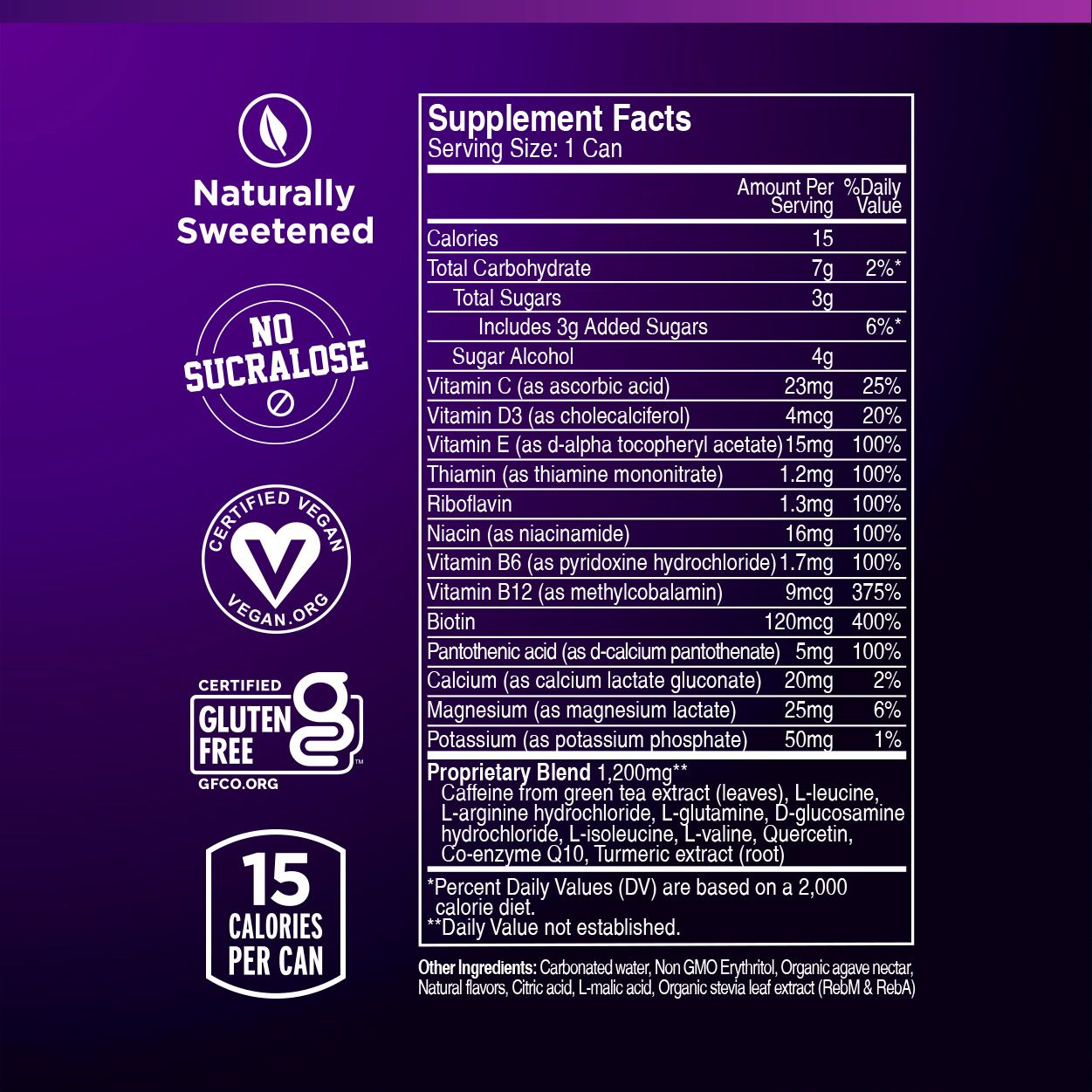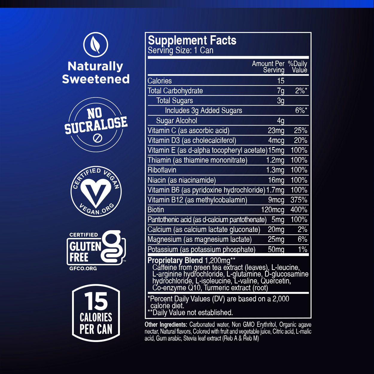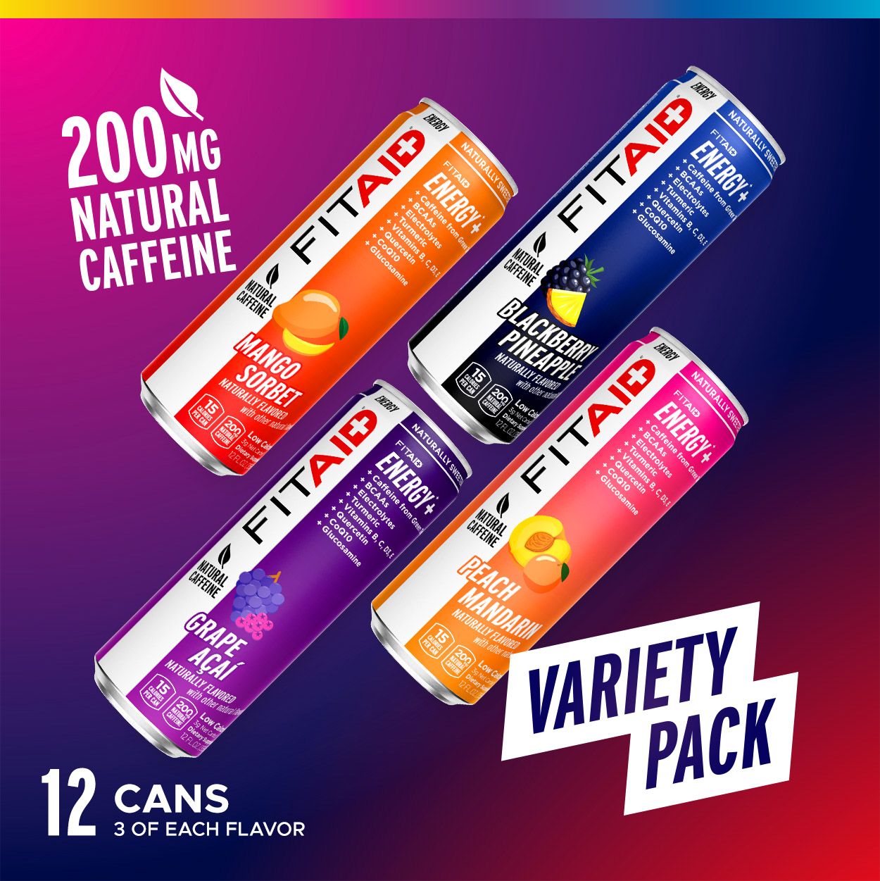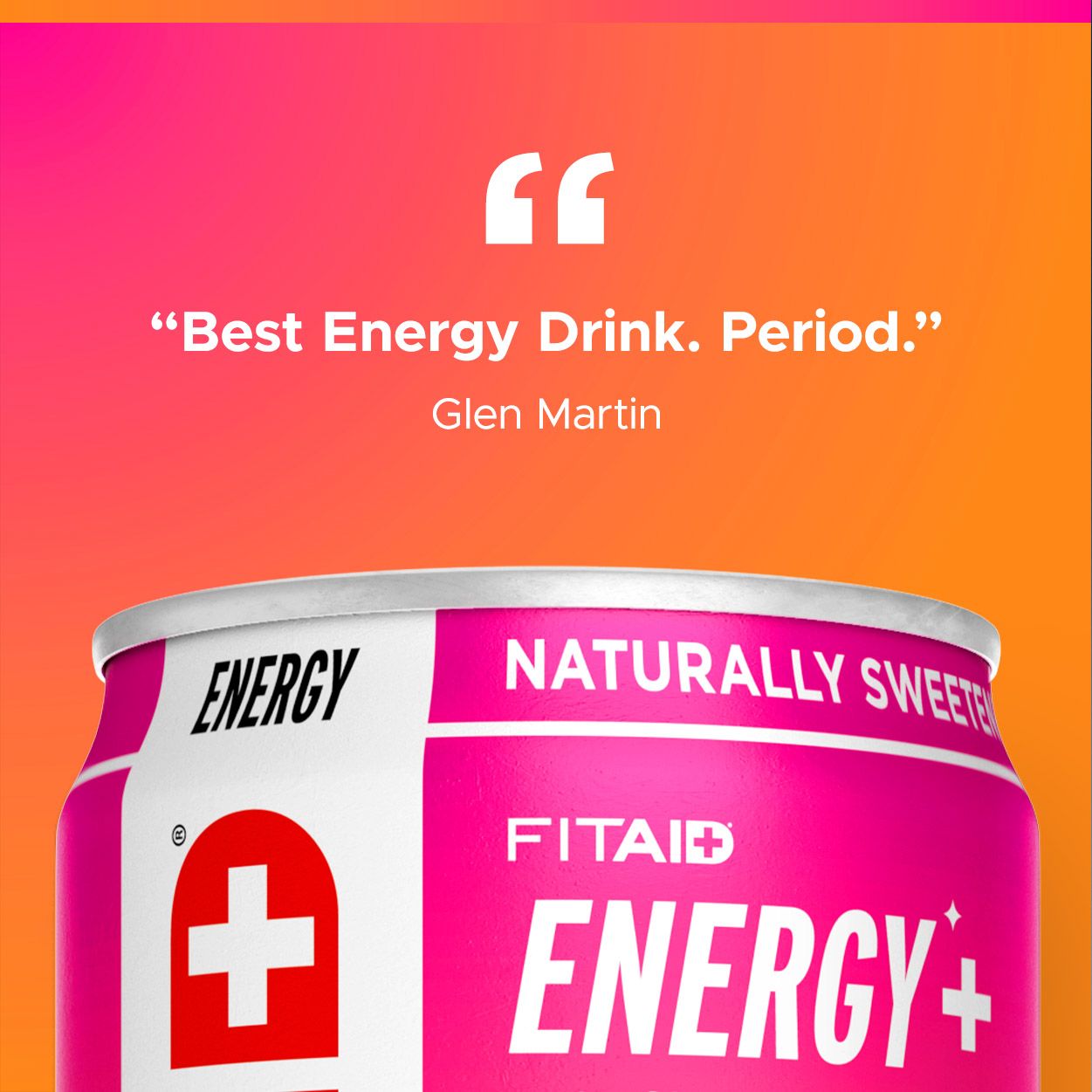 FITAID Energy is a performance fitness energy drink boosted with 200mg of plant-sourced caffeine from green tea. It is naturally sweetened with no sucralose, no aspartame, and no compromises. The natural caffeine charges you up to fight fitness fatigue while our original post-workout vitamin blend helps fast track your recovery. It is stacked with BCAAs, and essential vitamins, and provides a crash-free kick of bold caffeine. All of our hand-picked ingredients have met the highest supplement standards and are always vegan, non-gmo, and gluten-free. Welcome to energy 3.0, recharge with the best.