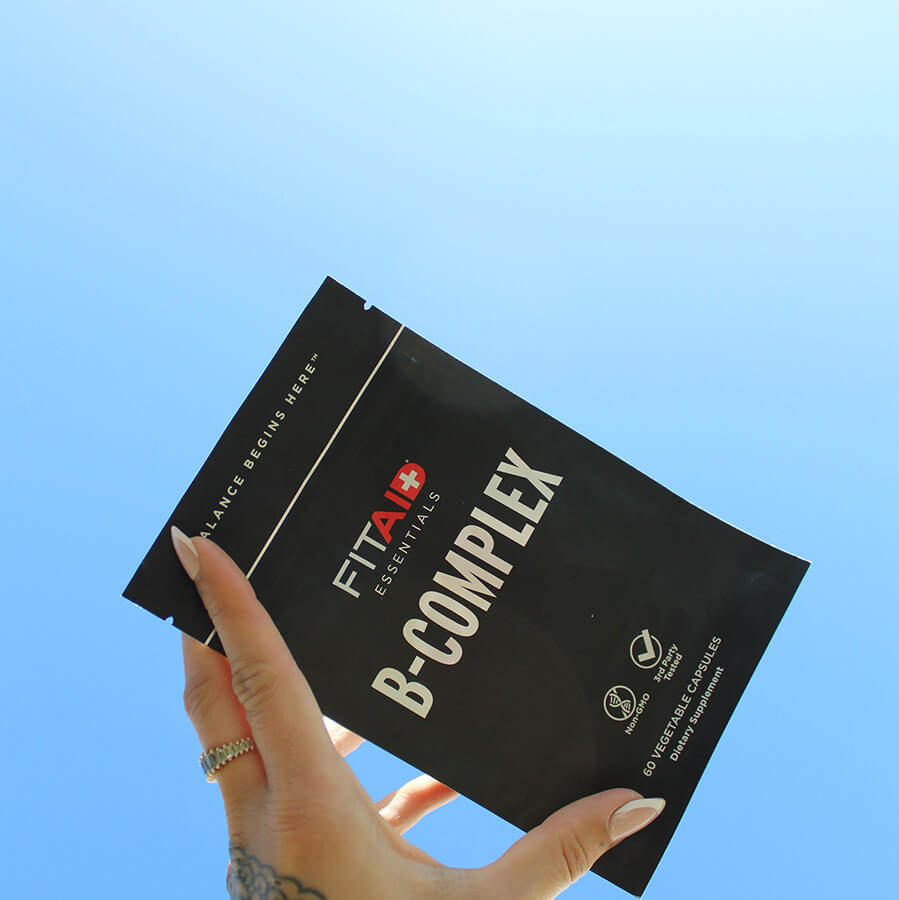 FITAID Essentials B-Complex includes B6, B12, riboflavin, thiamin, niacin, and more—all working together which has been linked in supporting energy and metabolism.