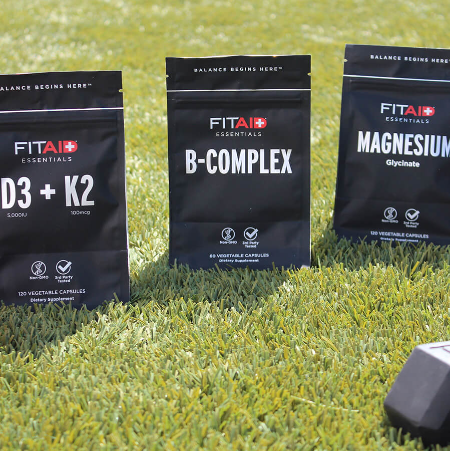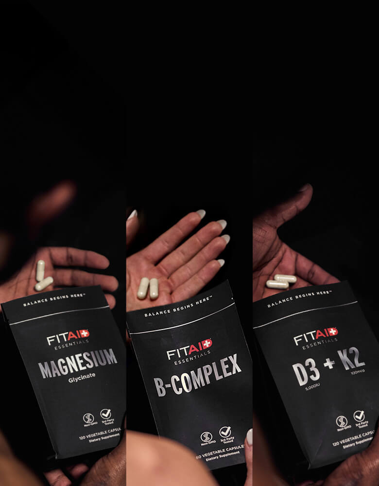 FITAID Essentials is our line of premium, daily-use wellness supplements. These key building blocks to your stack are available in Magnesium, D3+K2 and B-Complex, delivered in bioavailable vegetable capsules for maximum absorption and benefit.