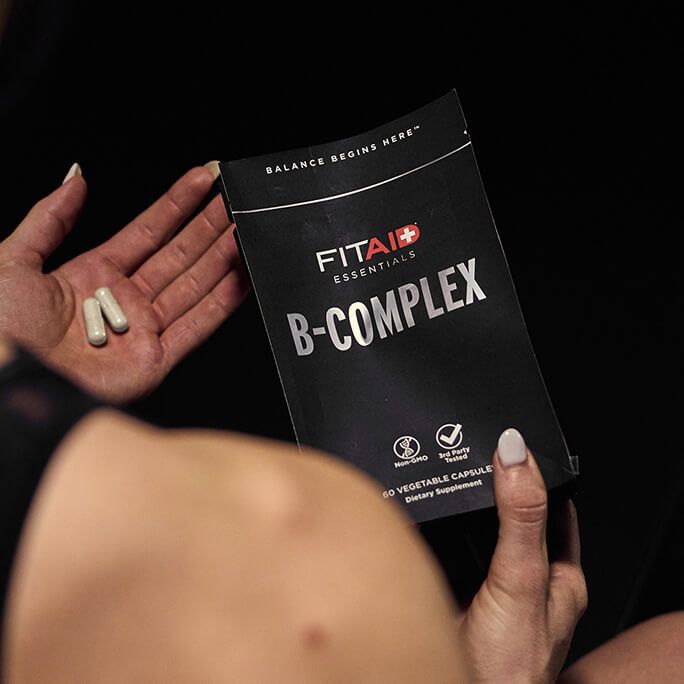 FITAID Essentials B-Complex includes B6, B12, riboflavin, thiamin, niacin, and more—all working together which has been linked in supporting energy and metabolism.