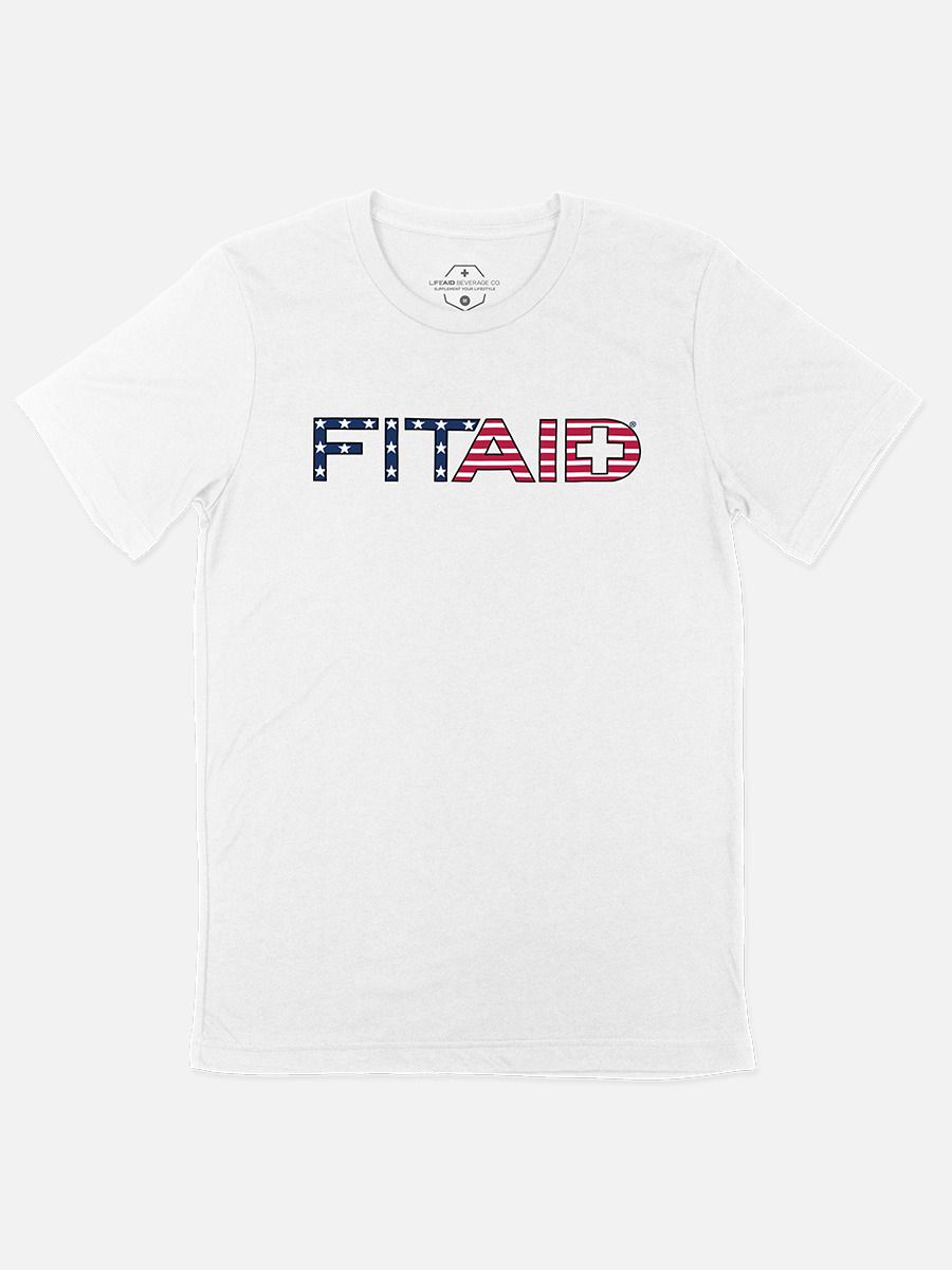 Show your stripes with the limited-edition FITAID USA Tee, available in classic black or white. Featuring a bold, patriotic themed logo, and ultra-soft and breathable fabric, this shirt is made to flex through workouts, BBQs, and every summer moment in between.