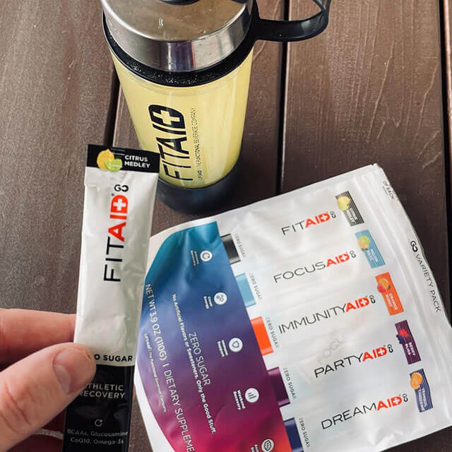 Mix one stick of FITAID GO with 12–16 oz of cold water, shake or stir, and enjoy. It’s that simple to make a refreshing post-workout or anytime beverage.