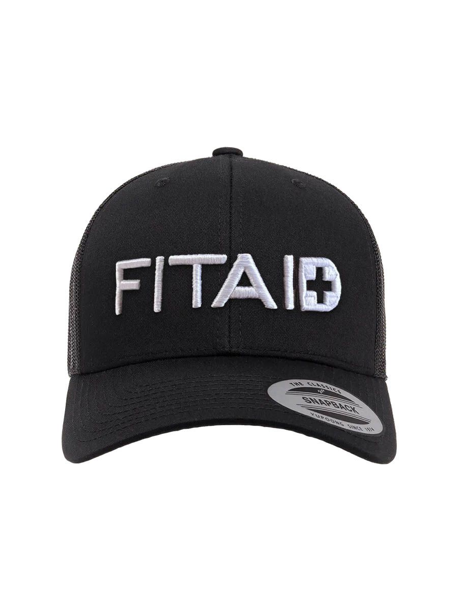 FITAID Mesh Back Hat - Black/White: This classic trucker hat delivers a clean, versatile look with bold FITAID branding. Its structured fit and breathable mesh make it perfect for everyday wear, from the gym to the weekend.