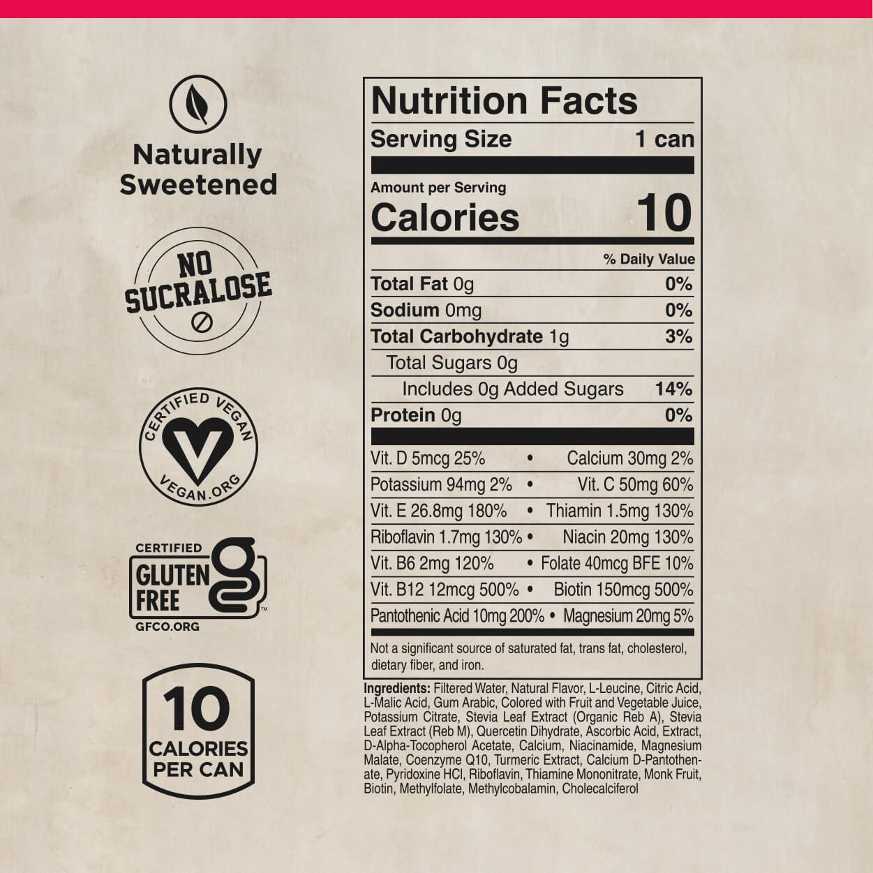 FITAID, the fitness recovery original, has been a mainstay of gym routines around the globe since 2011. This Zero-sugar, Naturally Sweetened Recovery Blend provides high quality vitamins and nutrients to help your body bounce back after any form of activity or exercise. FITAID Recovery is a revitalizing sugar-free fitness blend in a can- crafted to support your body's recovery after workouts or physical activities. Packed with targeted nutrients like BCAAs, glutamine, and vitamins, it has been expertly crafted. Completely caffeine-free sugar-free and naturally sweetened, FITAID can be enjoyed any time of day to fit your lifestyle. With its refreshing flavors and functional ingredients, FITAID Recovery ZERO is your go-to companion for post-exercise recovery.