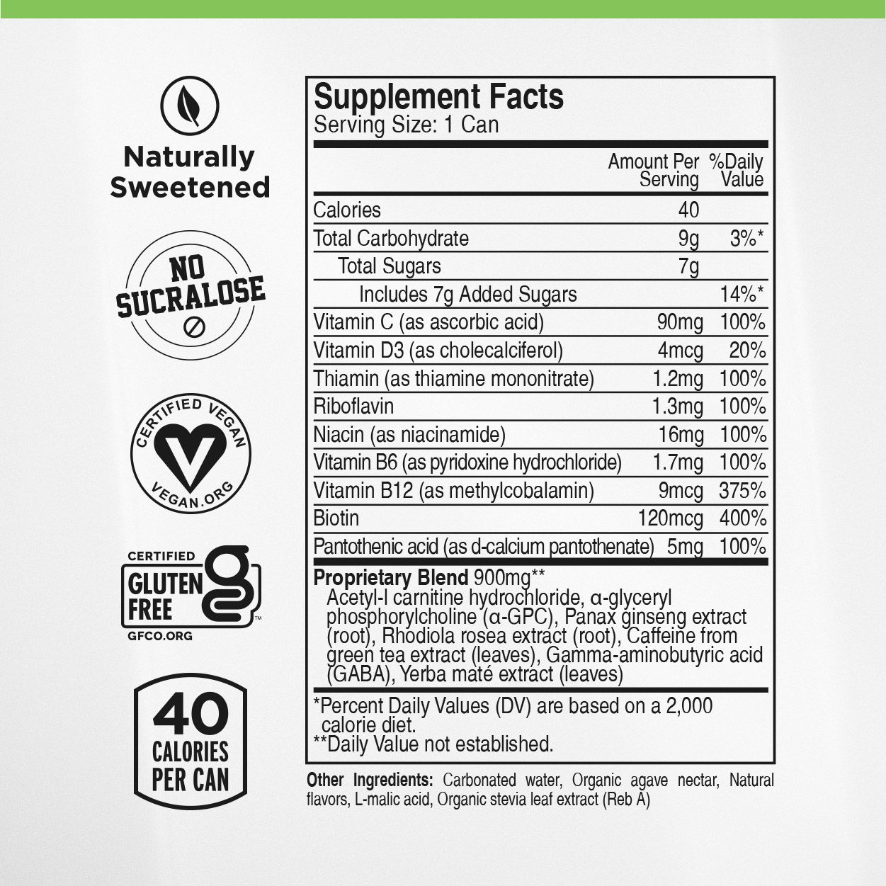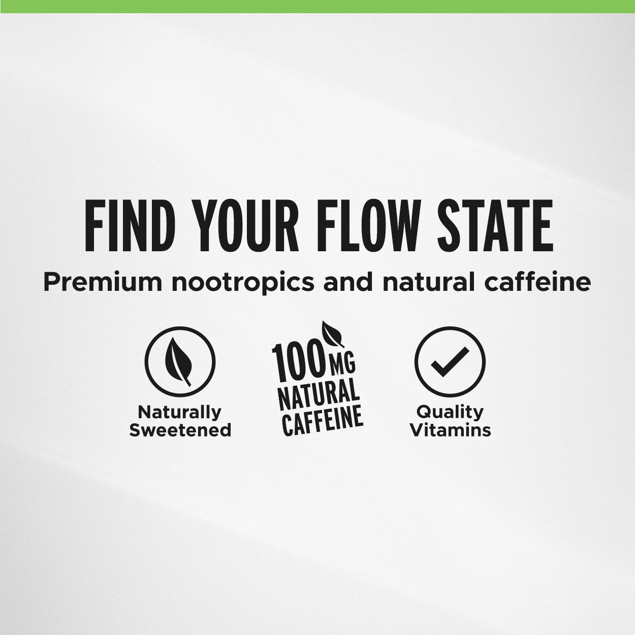 It's mental clarity in a can. Nootropics, vitamins, 100mg of natural caffeine from green tea and yerba maté. Everything you need to find a fast track to flow state.
