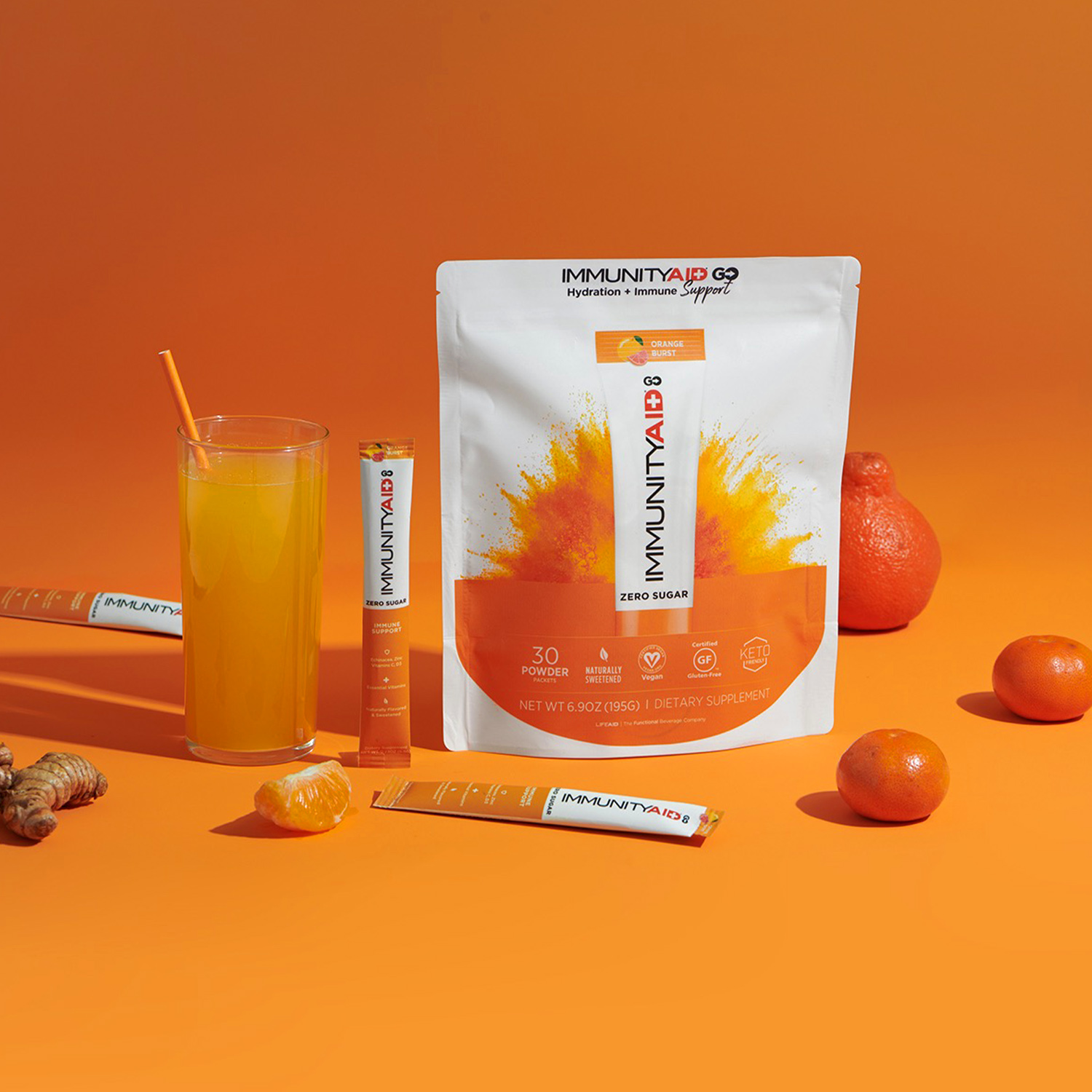 Enjoy IMMUNITYAID GO anytime: at home, work, or while traveling, when you want a clean, naturally sweetened drink with a light orangey taste.