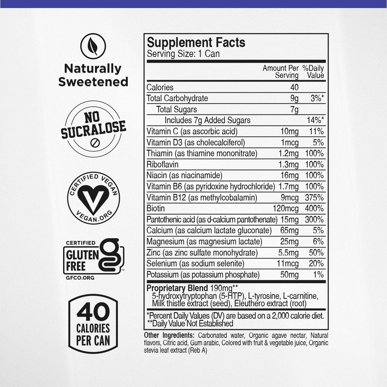 Lightly and naturally sweetened with organic agave nectar and stevia leaf extract. No sucralose, asparatame or other harmful gut fillers!