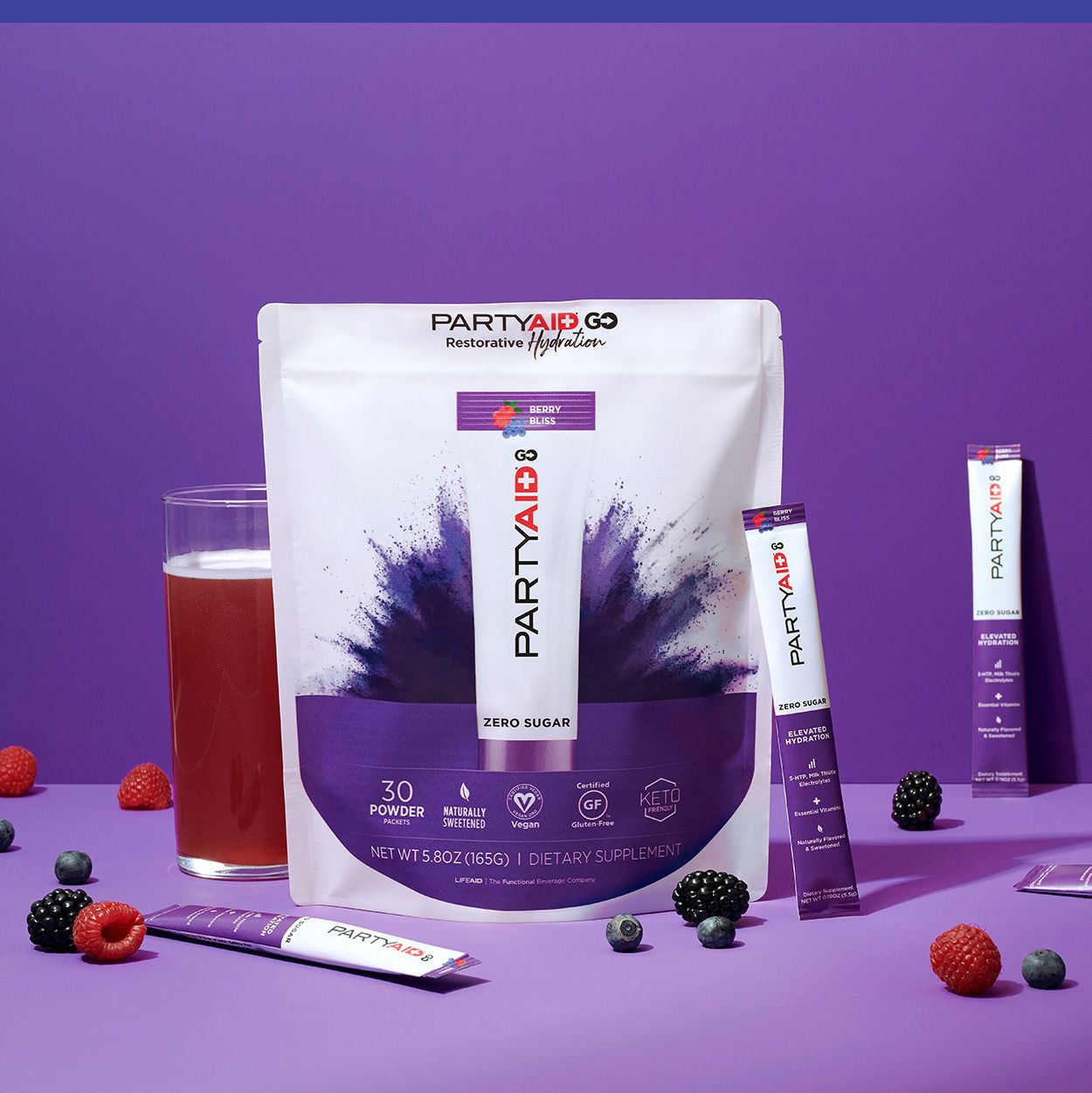 Mix up PARTYAID GO pre or post party for a refreshing, naturally sweetened drink to help you replenish and bounce back.